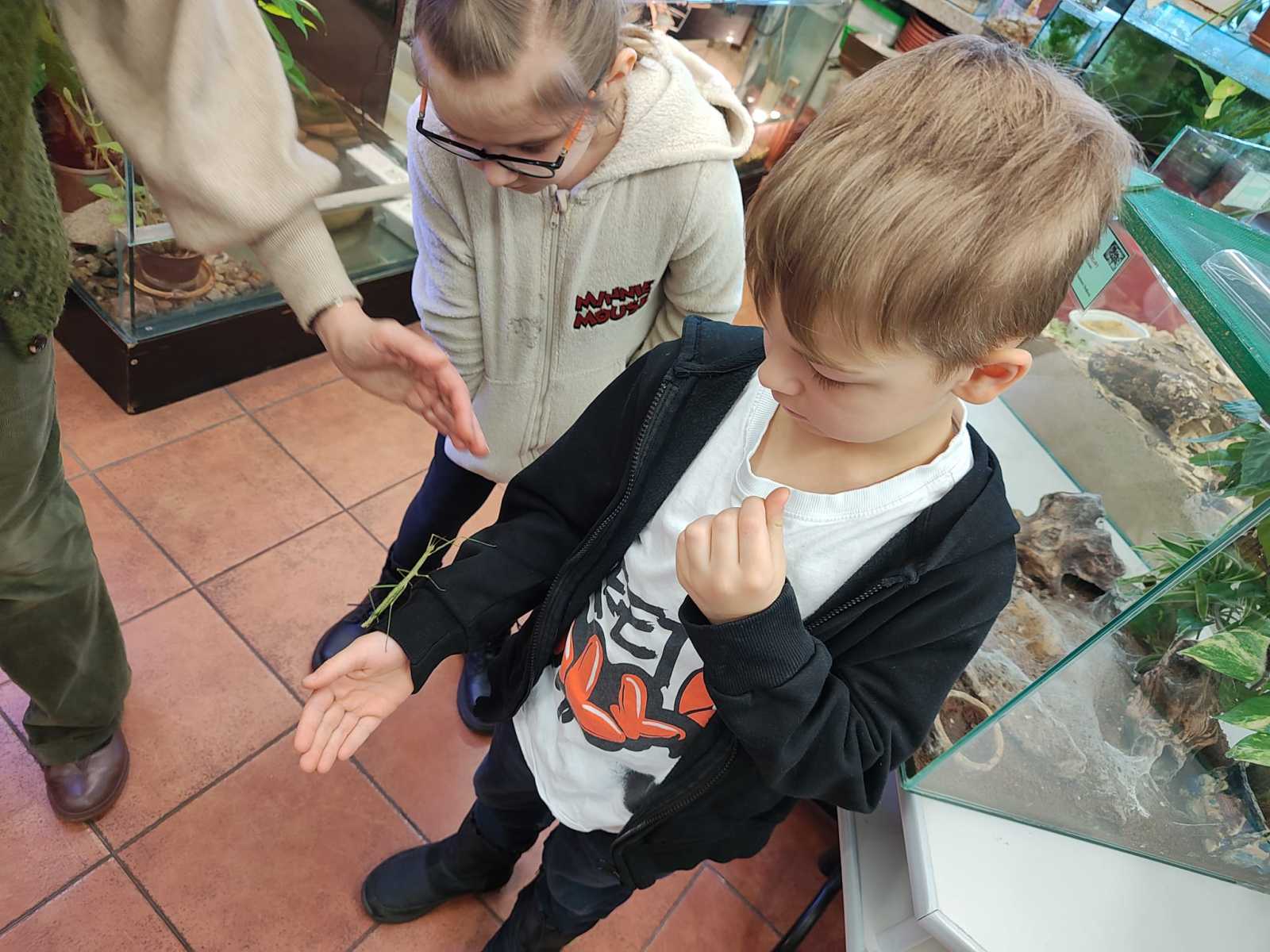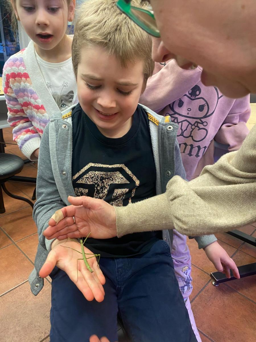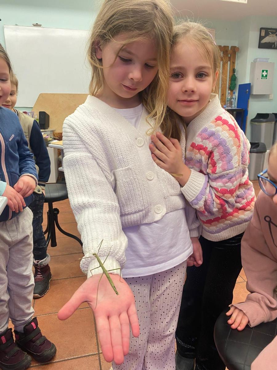 06.02 dzieci wzięły udział w kolejnych zajęciach przyrodniczych w Pałacu Młodzieży, podczas których poznały niezwykły świat owadów. Przedszkolaki dowiedziały się wielu interesujących informacji o ich życiu, wyglądzie oraz znaczeniu w przyrodzie. Największą atrakcją spotkania był patyczak, którego dzieci mogły zobaczyć z bliska, a nawet delikatnie potrzymać na rękach. Bezpośredni kontakt z owadem wzbudził ogromne zainteresowanie i radość, a także pomógł przełamać ewentualne obawy.