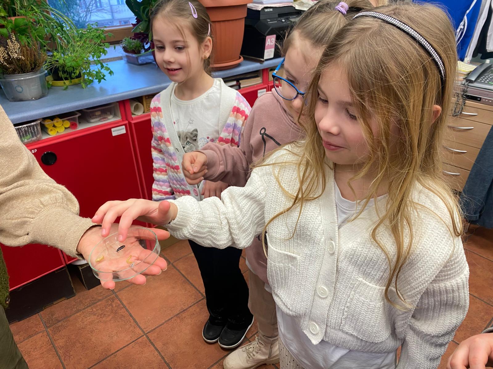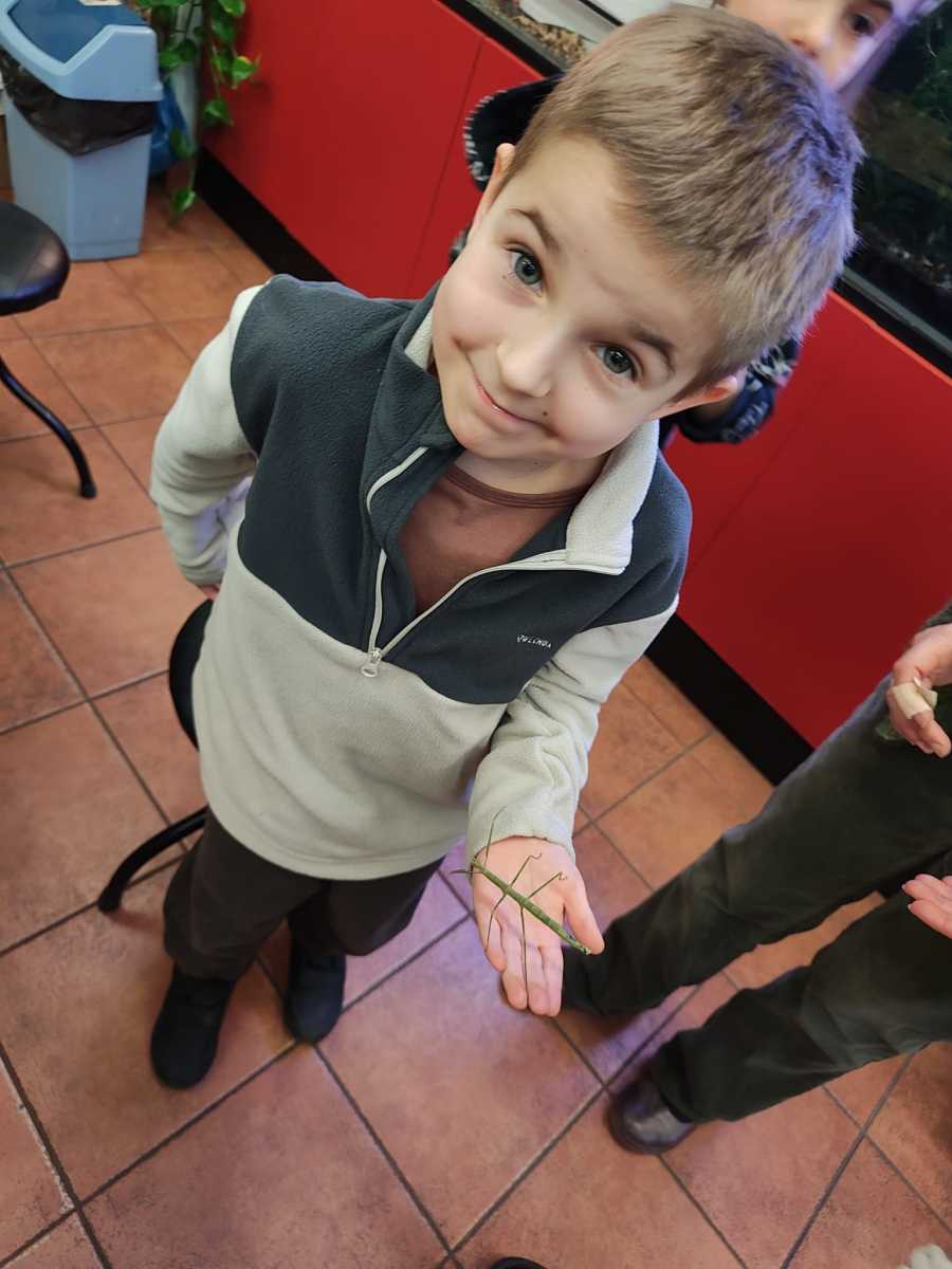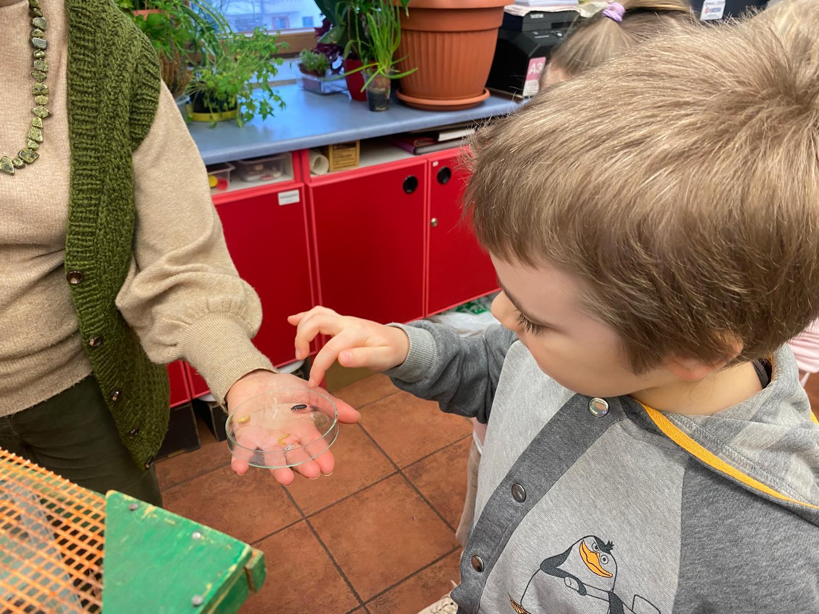 06.02 dzieci wzięły udział w kolejnych zajęciach przyrodniczych w Pałacu Młodzieży, podczas których poznały niezwykły świat owadów. Przedszkolaki dowiedziały się wielu interesujących informacji o ich życiu, wyglądzie oraz znaczeniu w przyrodzie. Największą atrakcją spotkania był patyczak, którego dzieci mogły zobaczyć z bliska, a nawet delikatnie potrzymać na rękach. Bezpośredni kontakt z owadem wzbudził ogromne zainteresowanie i radość, a także pomógł przełamać ewentualne obawy.