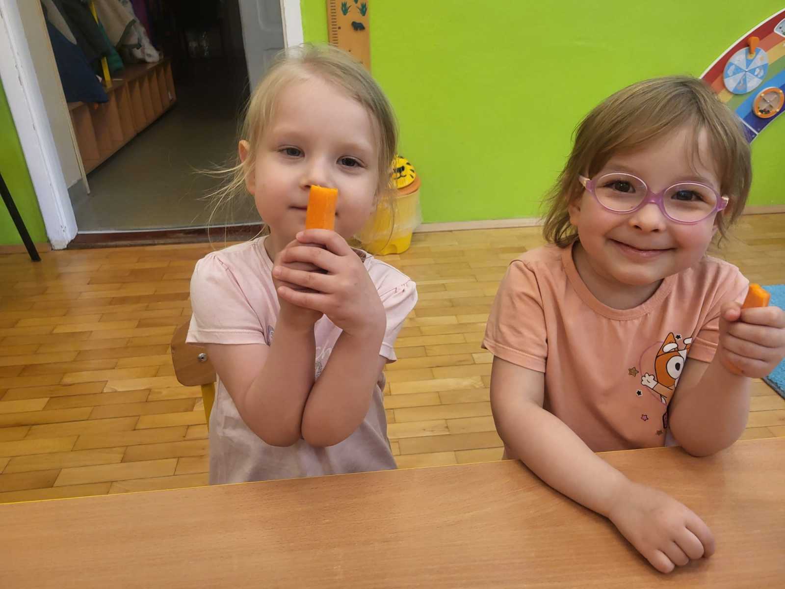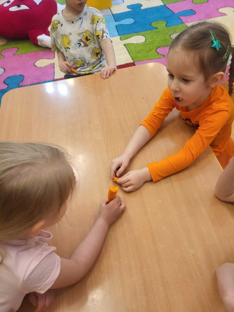 Podczas zajęć dzieci miały możliwość bliższego poznania marchewki poprzez doświadczenia sensoryczne. Badały jej kształt dotykiem, odkrywały jej słodki smak, wąchały charakterystyczny zapach oraz podziwiały intensywny, pomarańczowy kolor. Dzięki temu rozwijały swoją ciekawość poznawczą i uczyły się poprzez bezpośrednie doświadczenie.