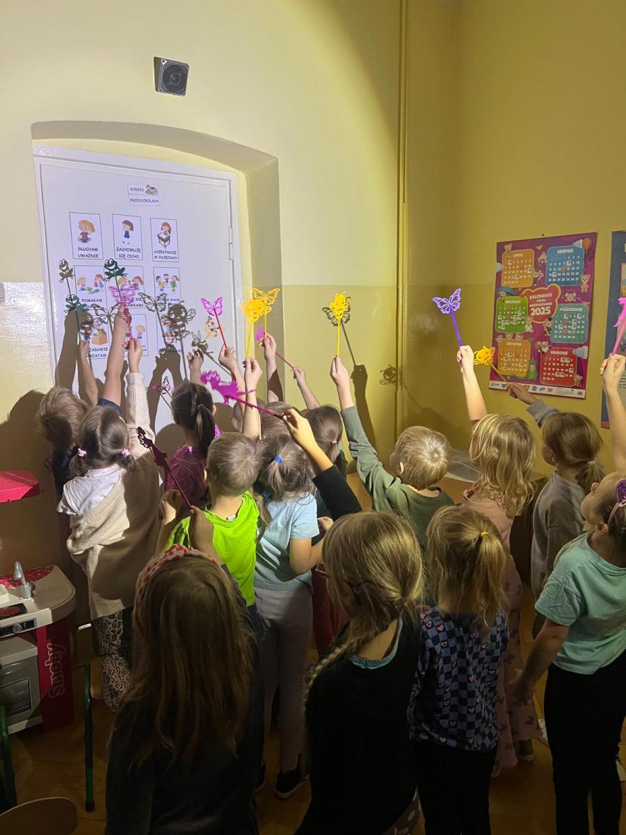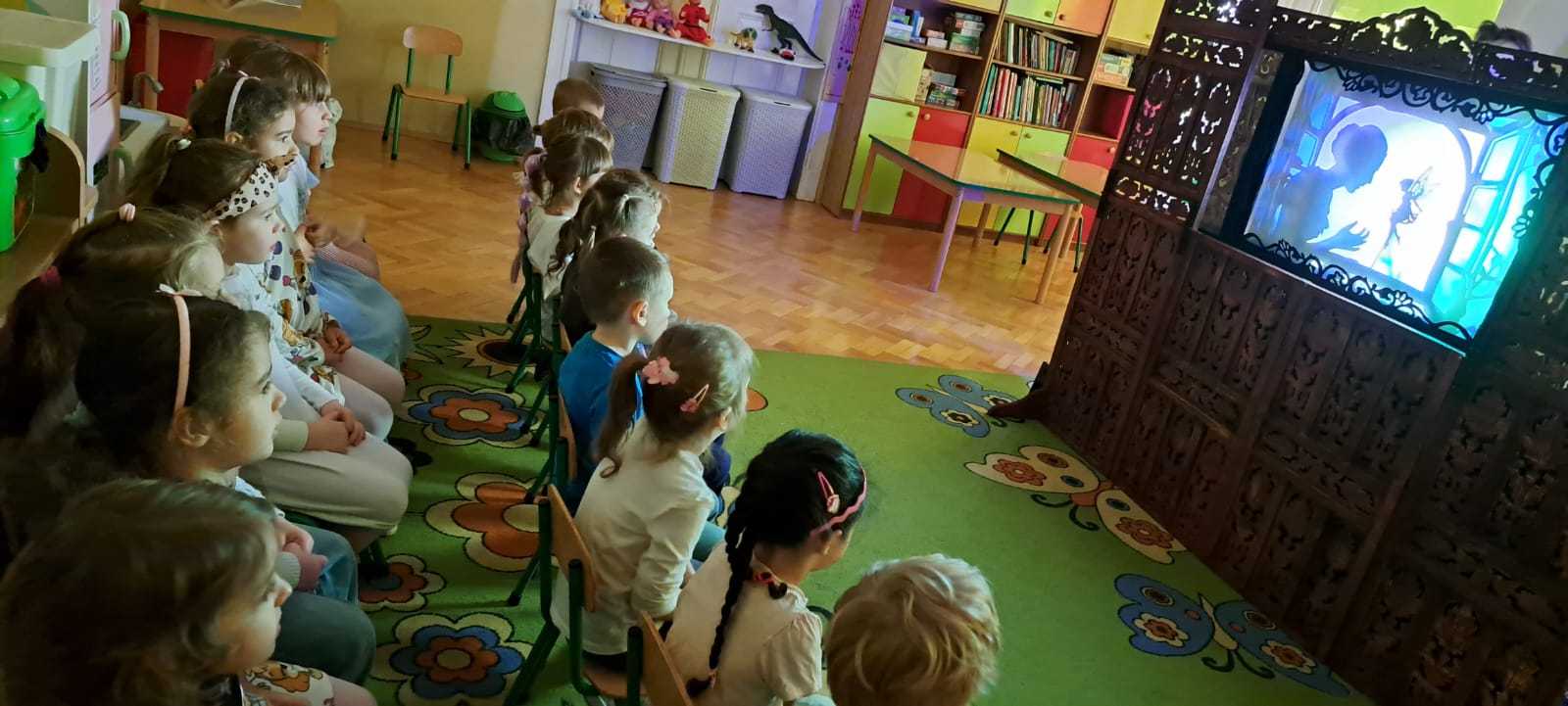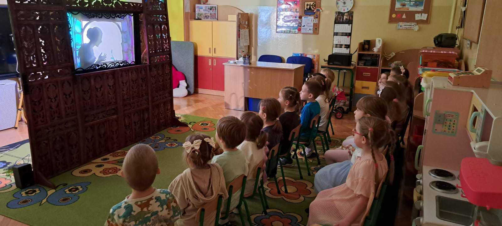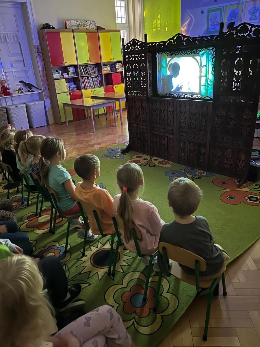 23.10.2025 wszystkie grupy przedszkolne miały przyjemnośc uczestniczyć w wyjątkowym wydarzeniu – TEATRZE CIENI. Przedstawiany był spektakl pt. „Calineczka”. Dzieci z ogromnym zaangażowaniem słuchały i oglądały przedstawienia. Na koniec miały okazję same pobawić się cieniami i zobaczyć, że to nie takie proste na jakie wygląda.
