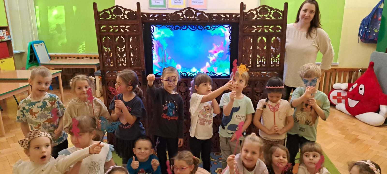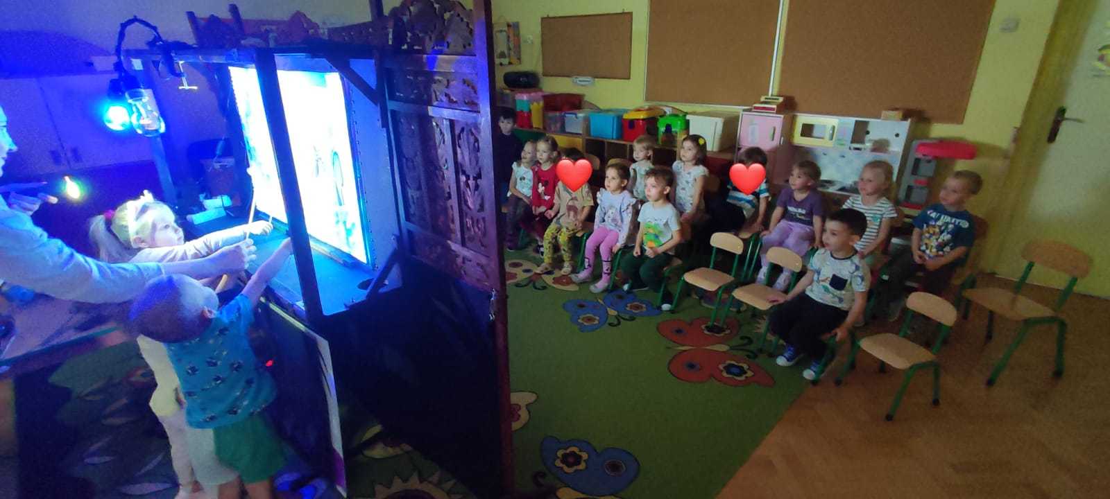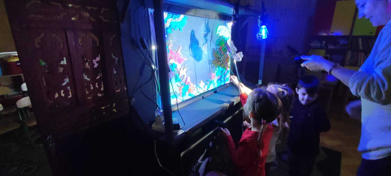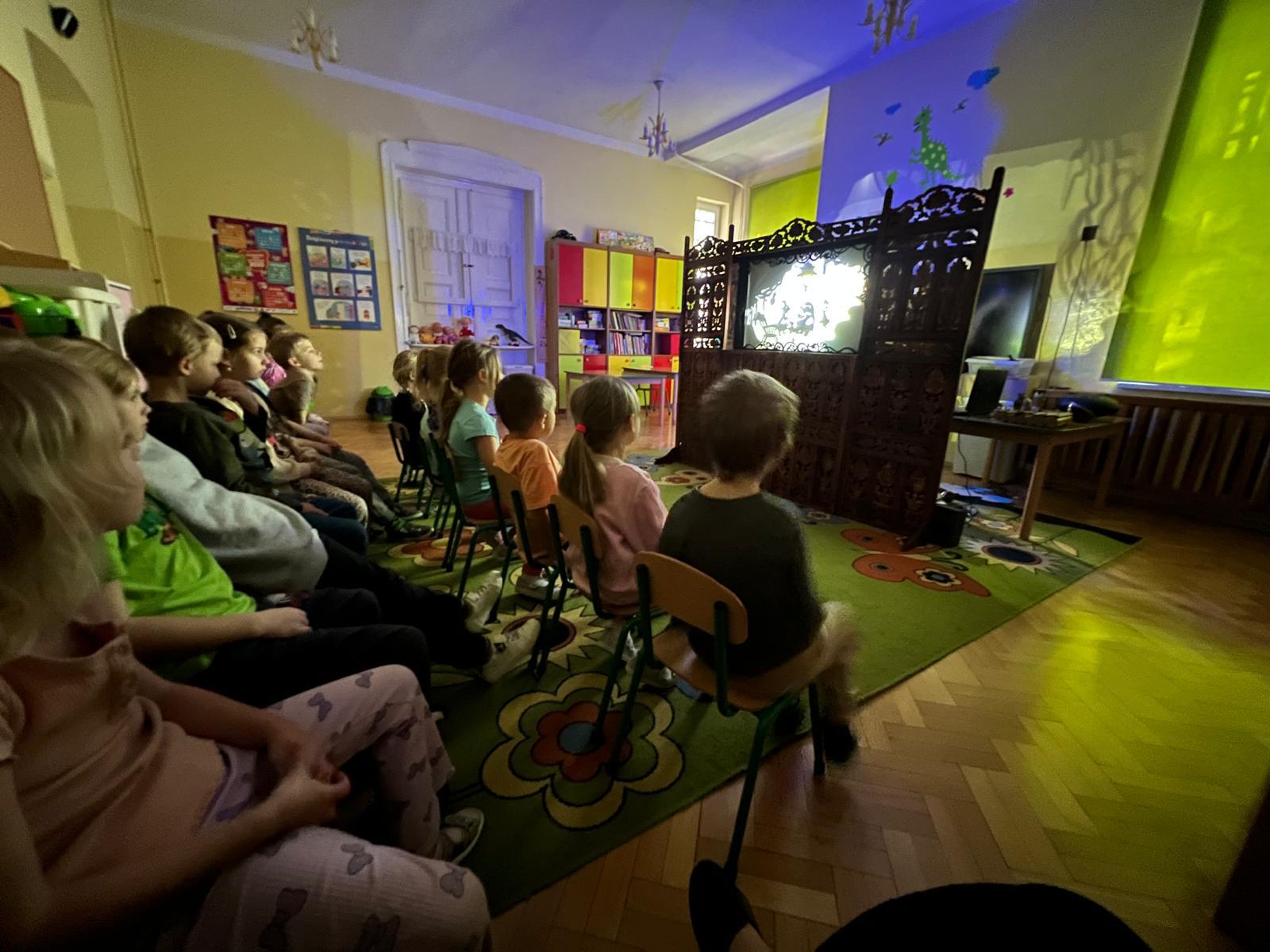 23.10.2025 wszystkie grupy przedszkolne miały przyjemnośc uczestniczyć w wyjątkowym wydarzeniu – TEATRZE CIENI. Przedstawiany był spektakl pt. „Calineczka”. Dzieci z ogromnym zaangażowaniem słuchały i oglądały przedstawienia. Na koniec miały okazję same pobawić się cieniami i zobaczyć, że to nie takie proste na jakie wygląda.
