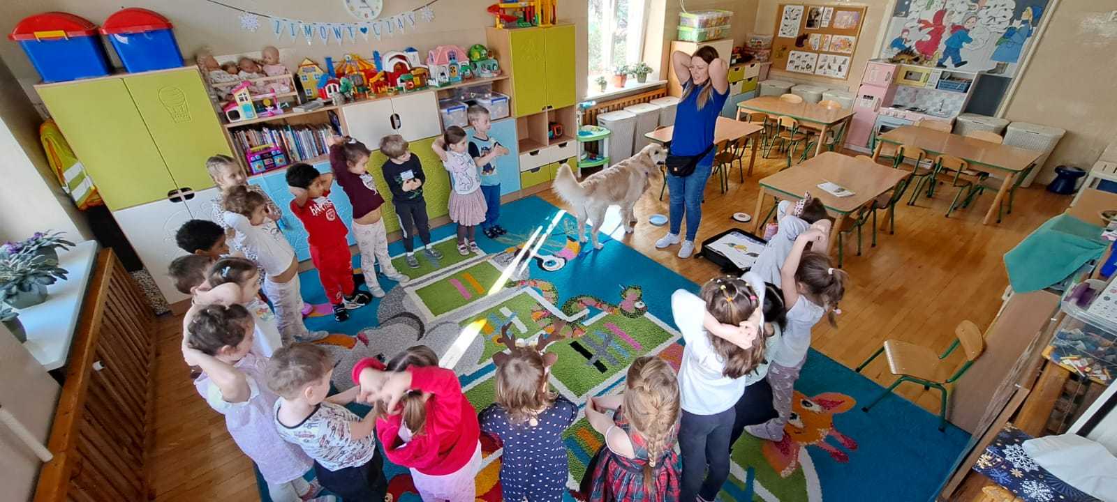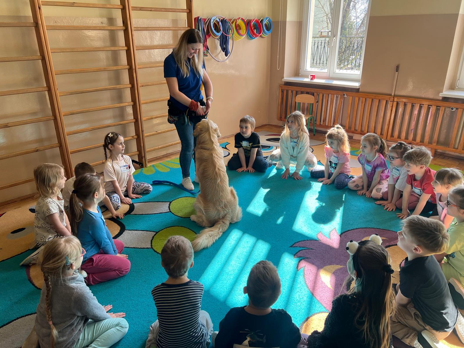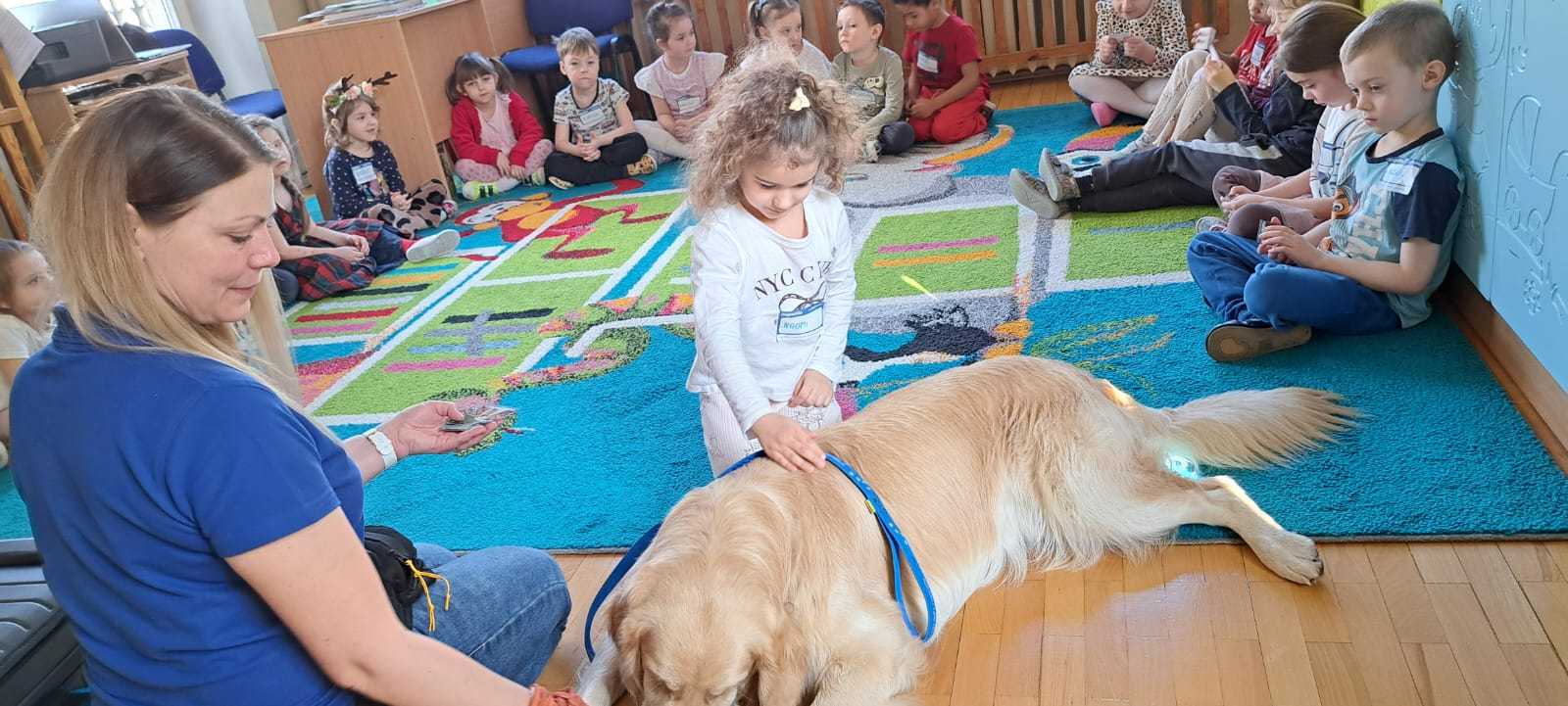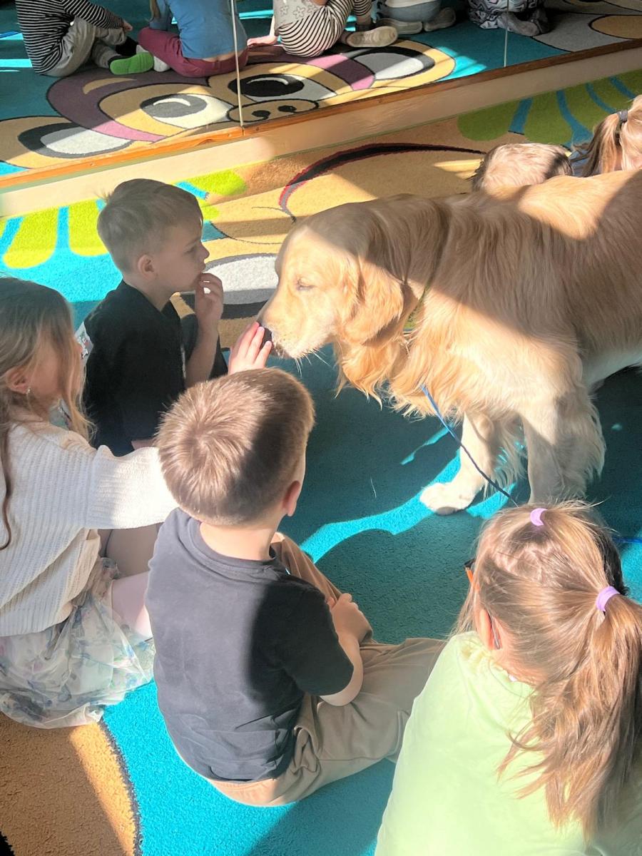 W naszym przedszkolu odbyły się wyjątkowe warsztaty z udziałem psa i jego opiekuna. Było to niezwykle ciekawe i pełne emocji spotkanie, podczas którego dzieci mogły dowiedzieć się, jak ważną rolę psy odgrywają w życiu człowieka.