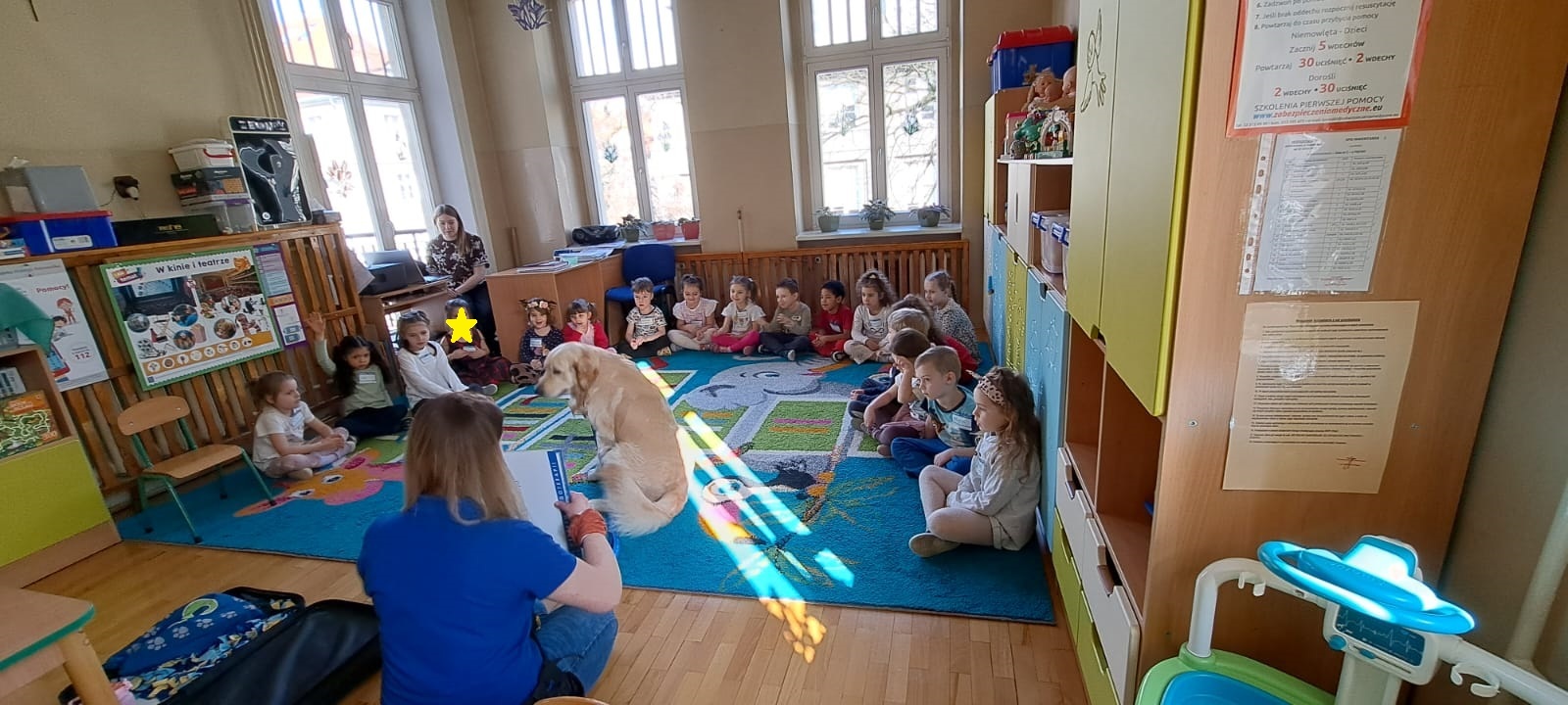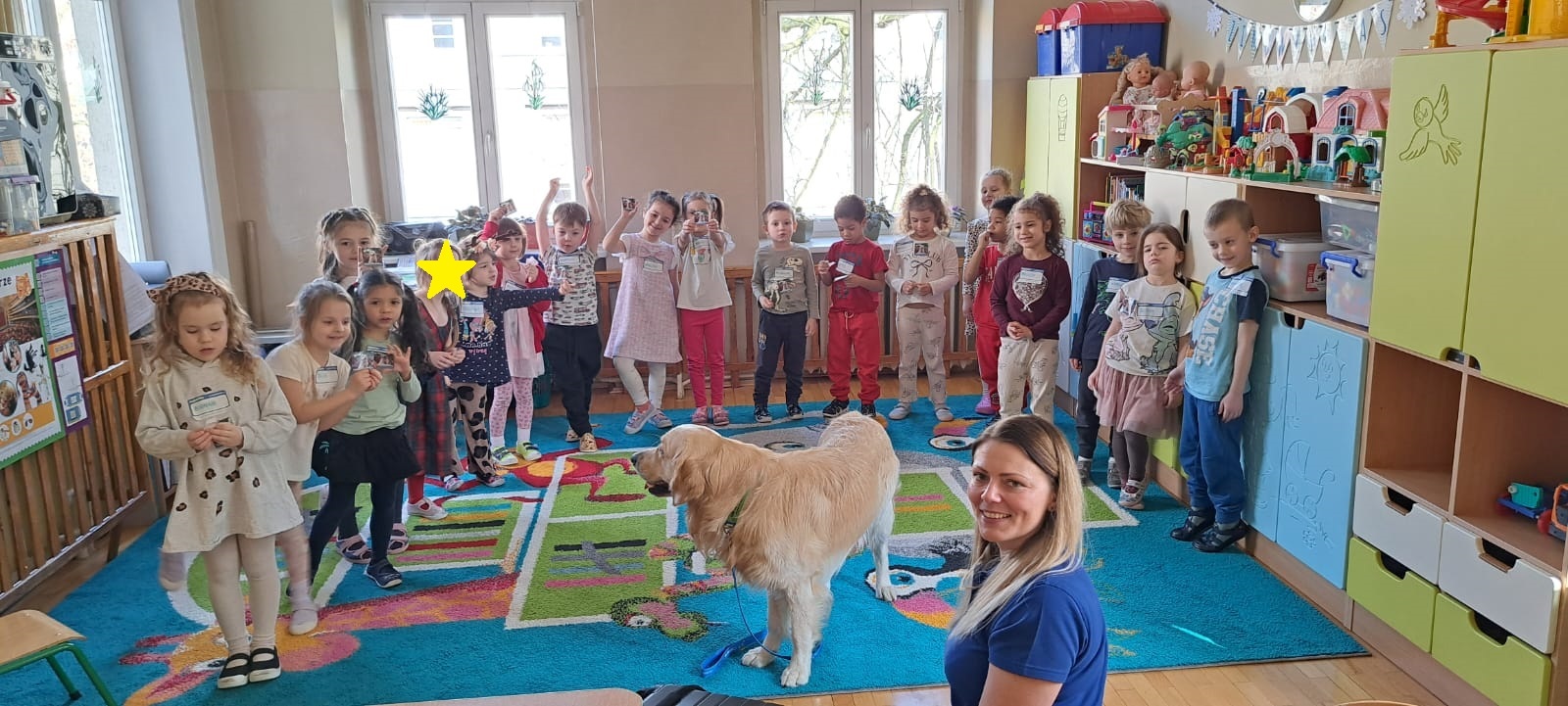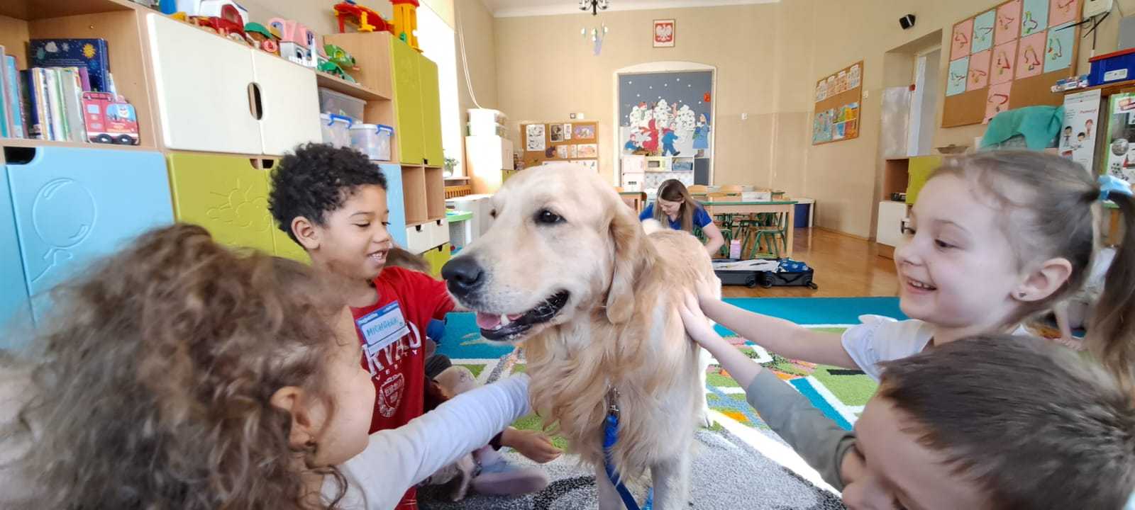 W naszym przedszkolu odbyły się wyjątkowe warsztaty z udziałem psa i jego opiekuna. Było to niezwykle ciekawe i pełne emocji spotkanie, podczas którego dzieci mogły dowiedzieć się, jak ważną rolę psy odgrywają w życiu człowieka.