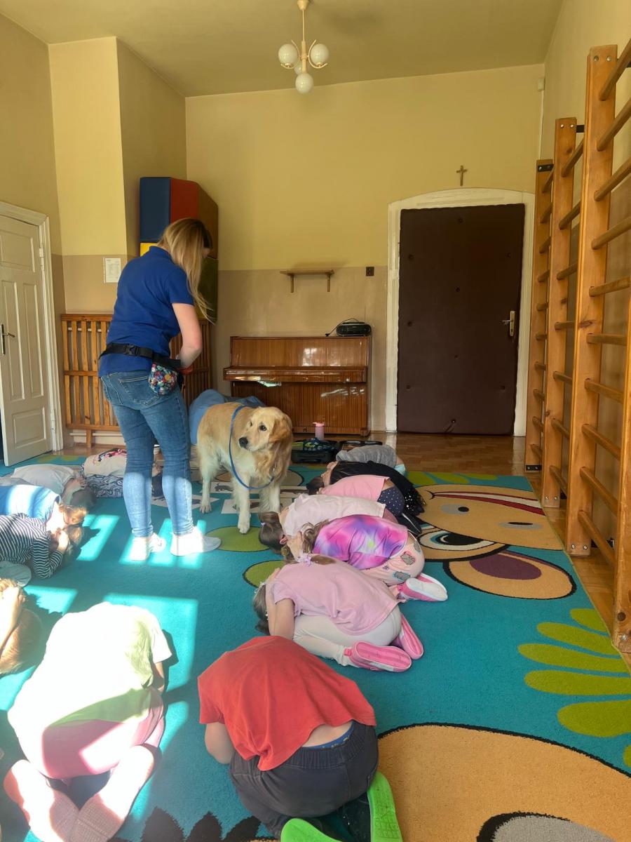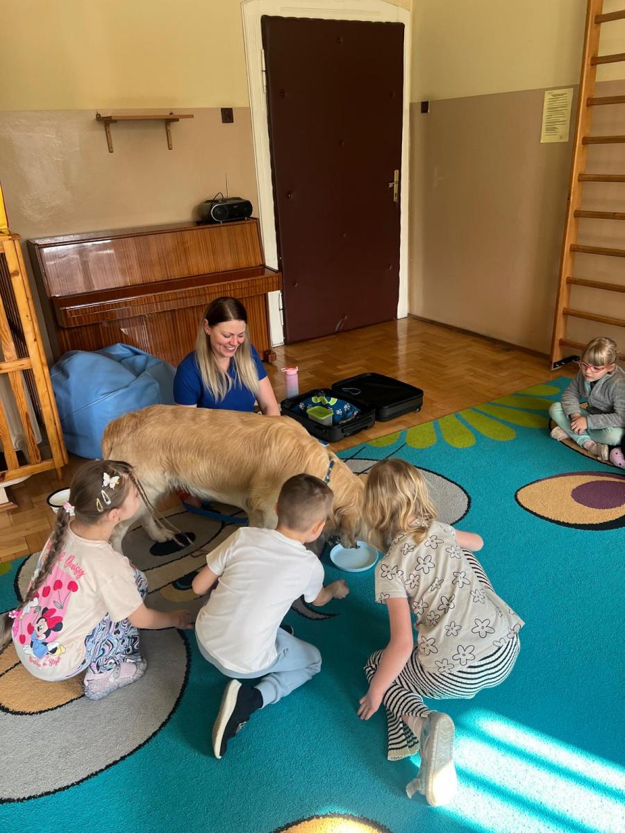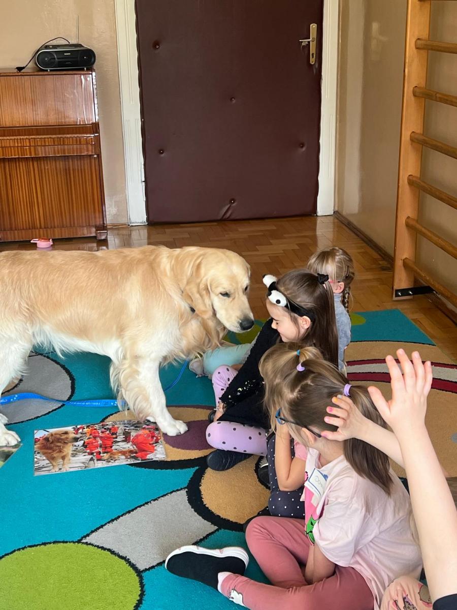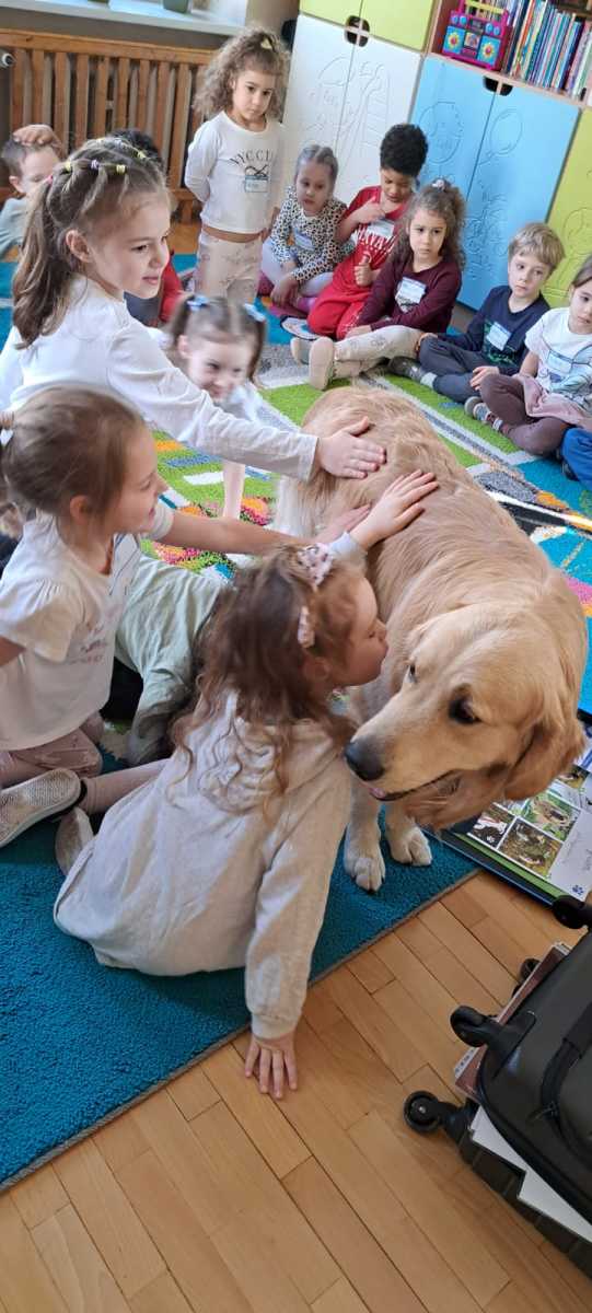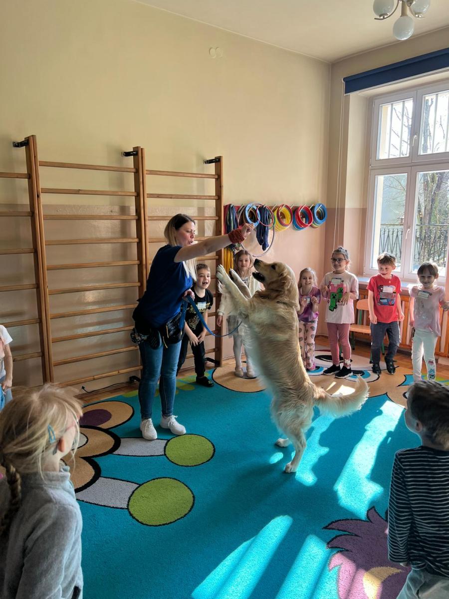 Podczas zajęć przedszkolaki poznały „zawody” wykonywane przez psy w różnych służbach. Dowiedziały się, że czworonogi pracują m.in. w policji, straży pożarnej, wojsku oraz w ratownictwie. Psy pomagają w odnajdywaniu zaginionych osób, wyszukiwaniu niebezpiecznych substancji, a także wspierają osoby z niepełnosprawnościami jako psy przewodnicy czy terapeuci. Dzieci z dużym zainteresowaniem słuchały opowieści o szkoleniu psów oraz o tym, jak wiele cierpliwości i pracy wymaga przygotowanie psa do tak odpowiedzialnych zadań.