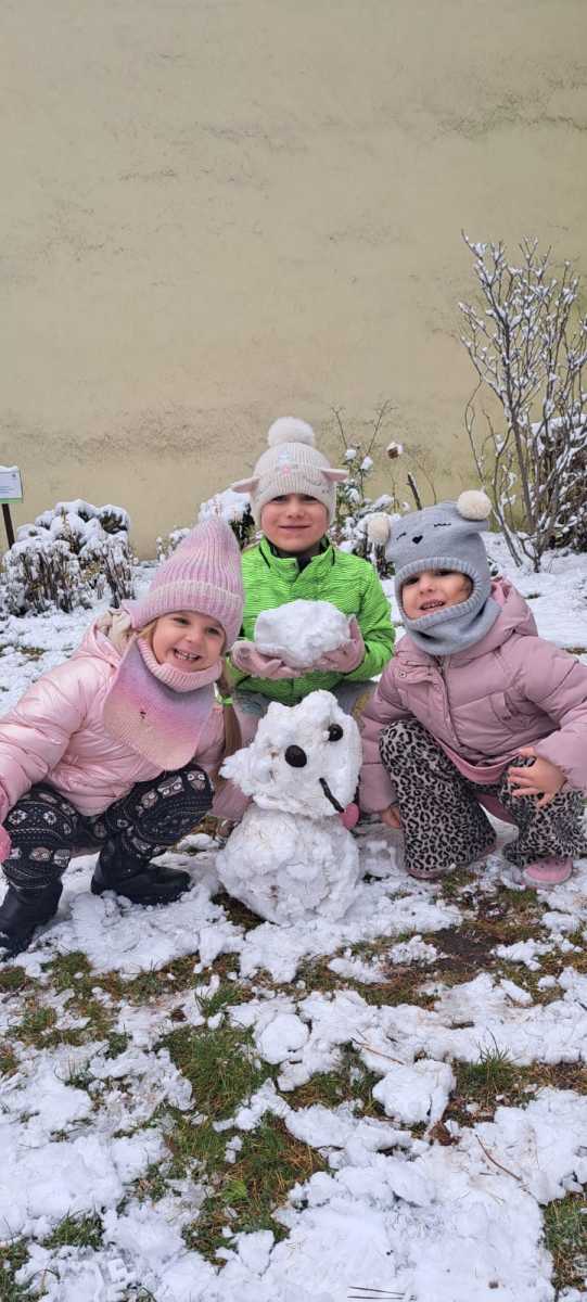 Dziś nasze STARSZAKI i ŚREDNIE spędziły wspaniały, zimowy dzień na świeżym powietrzu. Dzieci lepiły bałwanki, tworzyły śniegowe aniołki oraz malunki na śniegu.